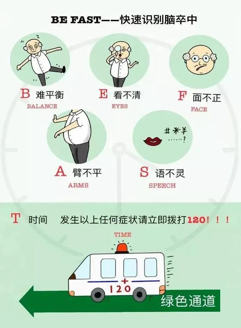 “未病先防,既病防变。”经常体检可以提前发现疾病或者危险因素并及早干预,防止更严重的事件发生。本身具有脑血管危险因素如高血压、高血糖的病人要及时监测血压、血糖,遵医嘱按时、按量服药。如果出现血压、血糖等不平稳,尽早咨询专业医师调整用药,不可擅自减药或者停药。