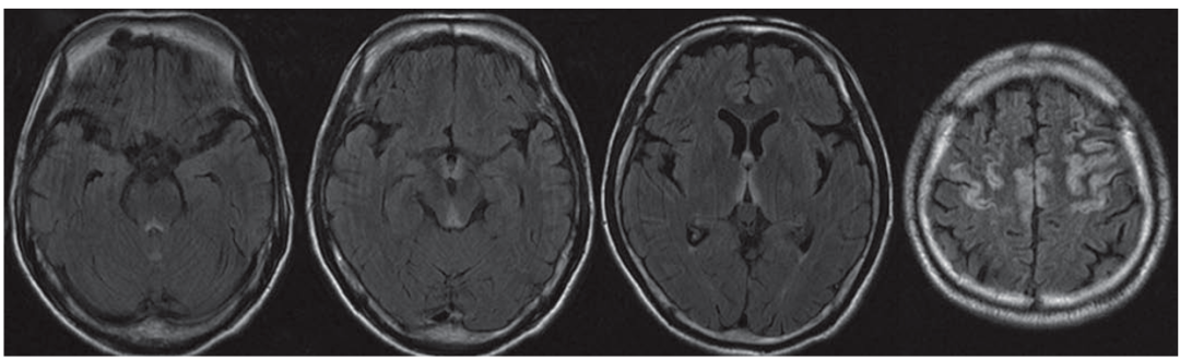 穹窿、丘脑背内侧及大脑皮层对称性高信号