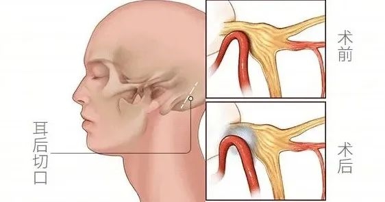 治疗原理:手术医生在显微镜下找到责任血管,把它从被压迫的神经边上分开,两者中间放一个小垫片,让责任血管不再刺激正常神经。因为病因解除了,80%以上的患者手术结束就立竿见影,部分患者症状会明显减轻,一两个月后自动消失。