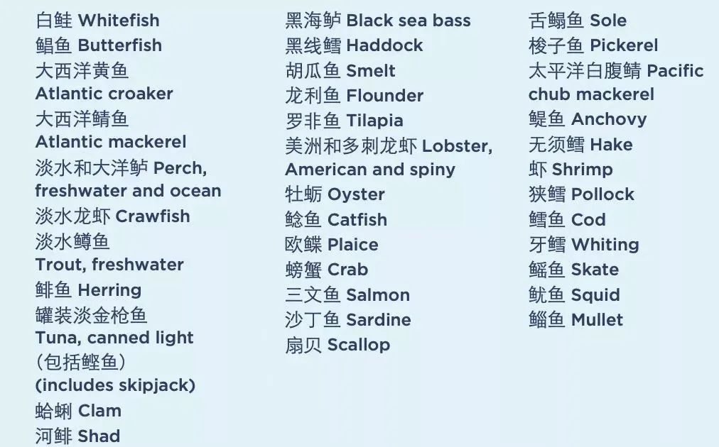 含汞较多的掠食性鱼类有鲸、鲨鱼、旗鱼、鲭鱼等;不过除了某些以海鲜为主要食物来源的地区外,一般人也很少能吃到这些野生鱼类,且每周食用2~3份低汞含量鱼仍然是安全的。下面来看看美国自然资源保护协会列举的含汞量较高的鱼类及相关建议: