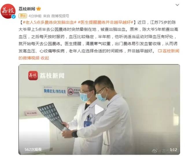 今天是民间俗称“龙抬头”的日子,春回大地,万物复苏。虽然万物生机勃勃,但因气候的变化导致各种疾病随之而来。近日,就有一条老人过早晨练引发脑出血的新闻,引发广泛关注和热议,一起来看看。