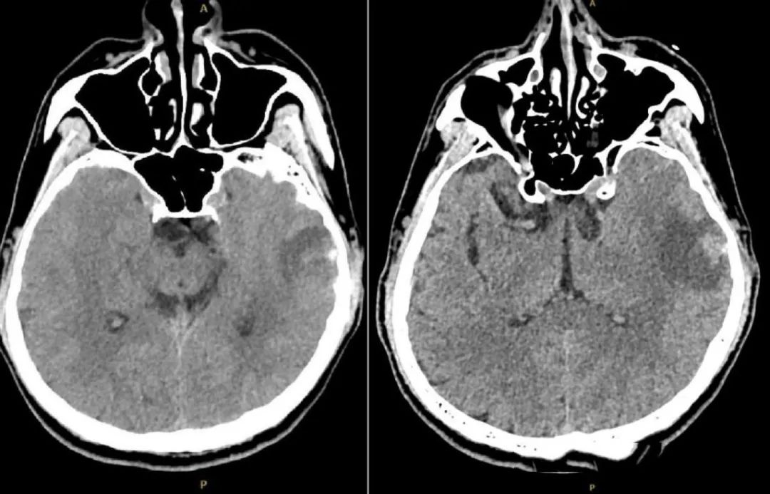 经检查,刘同学的大脑状态在短时间内急剧恶化,多处脑出血和肿胀、头颅CT血管影像中很多静脉血管消失。