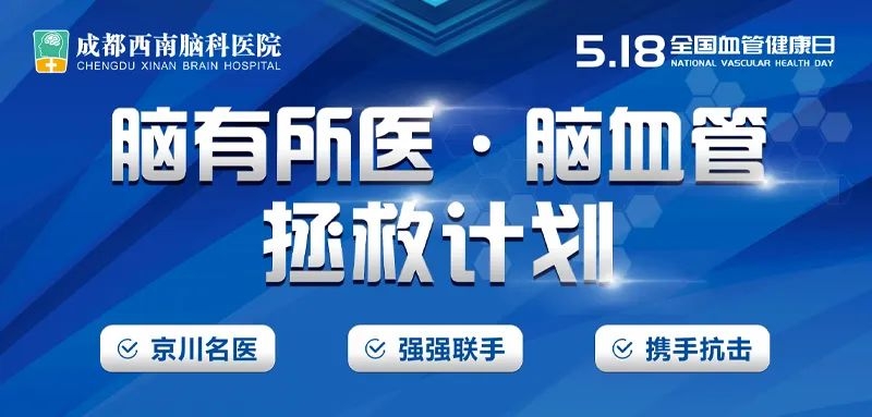 我国将每年的5月18日定为“全国血管健康日”,旨在呼吁大家重视血管健康,守护人类生命之河。作为西南地区脑病专科医院,我院正式启动“脑有所医·脑血管拯救计划”大型公益特别活动,号召社会关爱血管健康,同时对脑血管病患者提供正确的就诊治疗,让他们重拾治疗的信心,远离疾病的痛苦,重新开始新的美好人生!