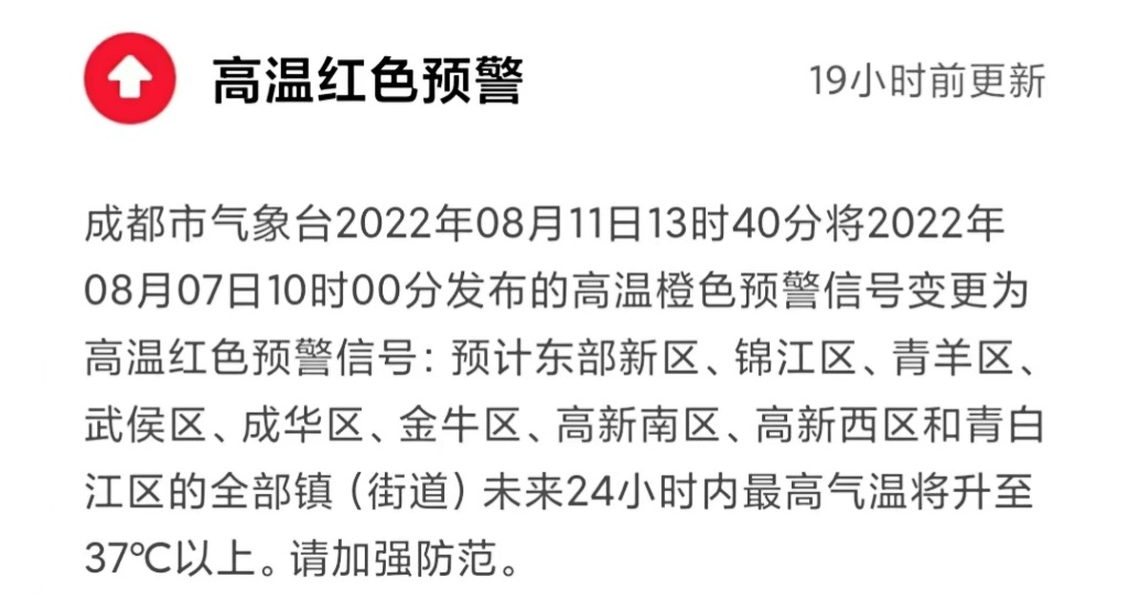 成都4地首发红色高温预警!预计还要热10天!警惕持续高温引发脑