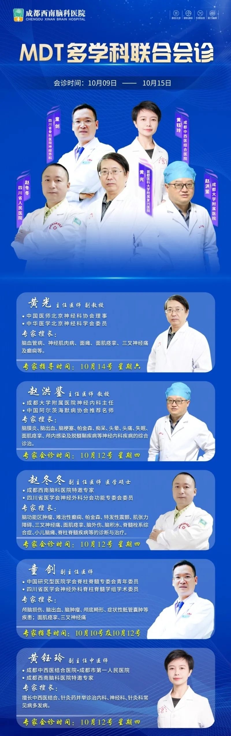 成都西南脑科医院自建院以来,一直把患者的利益放在第一位。为了满足患者的就诊需求,医院不定期邀请请京川两地来院会诊,让更多患者接受系统专业的治疗,帮助脑病患者早日恢复健康!