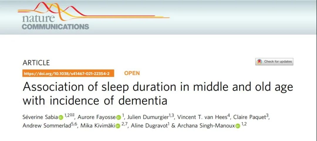 国际学术期刊《自然通讯》(Nature Communications)发表了一项25年随访研究:睡眠时间少于6小时,与患痴呆症风险增加三分之一有关。