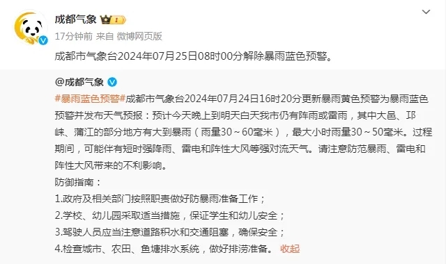 今日中伏,成都暴雨蓝色预警终于解除,防病防寒正当时!