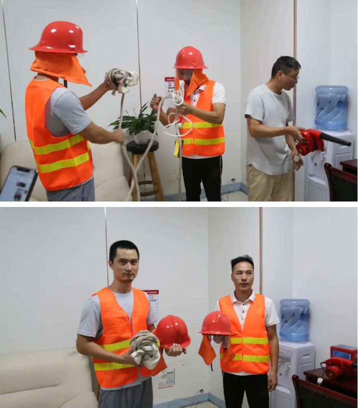 培训过后,总务科又组织保安、后勤人员等进行有限空间应急演练。