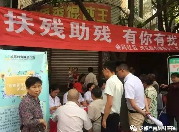在“5.21”全国助残日即将来临之际,金凤社区联合天亿综合服务中心于2017年5月19日上午,邀请“向阳花开公益行动”义诊团医生成都西南脑科医院的医务工作者,在辖区金凤街开展脑瘫儿关爱、帕金森、老年痴呆前期诊断等助残活动。此次活动旨在呼吁社会各界关爱残疾人尤其是脑瘫儿群体,给予他们包容、爱与帮助;呼吁关注脑健康、认识脑科学,掌握帕金森、老年痴呆等常见脑科疾病的早期症状,做到早预防、早发现、早控制。