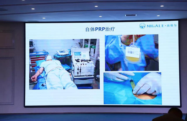 随后,主讲嘉宾在《PRP在临床的运用》中讲到,PRP是指用手工或仪器分离出的高浓度血小板血浆,主要包含血小板、血浆、纤维蛋白、白细胞、少量红细胞等成分。它具有促进止血、提升血小板作用,同时也是自体血小板的浓集物。富血小板血浆技术就是把血液中的血小板收集起来的技术。血小板富含大量生长因子,在人体自我愈合和修复过程中有重要的作用,它是人体的“再生药”。