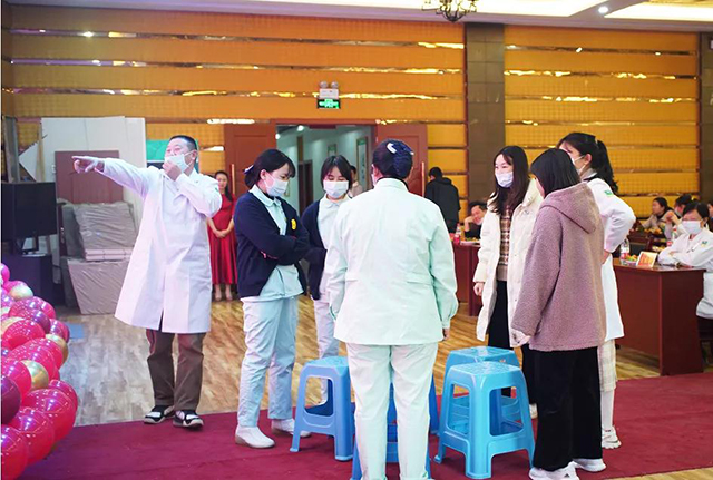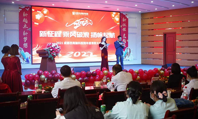 今年年会由宣教科杨洪璐和医务科李鹏主持,分为三部分,先是邢院长发言,随后是对我院先进集体和个人、优秀管理、服务明星、较美逆行者等进行了表彰和奖励,穿插着节目表演和游戏互动。