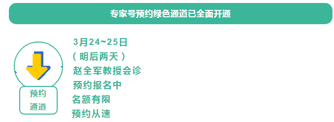 赵全军教授的会诊时间为3月24~25日两天,请大家合理安排预约时间。