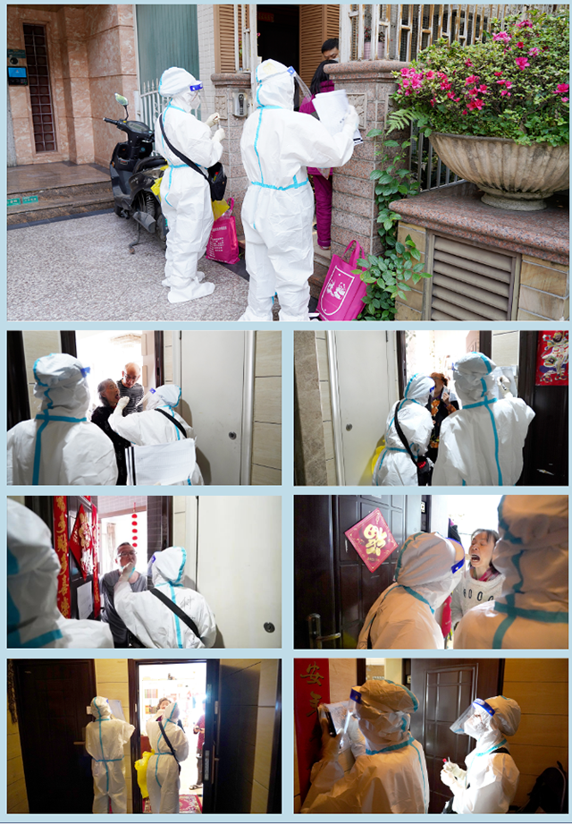 在取样现场,医护人员严格执行采样流程,为受检者进行核酸咽拭子采样,她们的工作步骤行云流水、一气呵成。