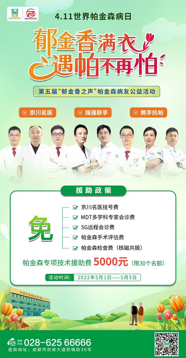 4月以来,成都反复出现疫情,受其影响,很多想来参加活动的帕金森病友来不了了。经我院研究决定,原定于4月9~13日开展的第五届“郁金香之声”帕金森病友公益活动,延期至5月1~5日。请大家合理安排好自己的时间,来院途中注意做好个人防护,提前打开健康码,积极配合测量,安全就诊。