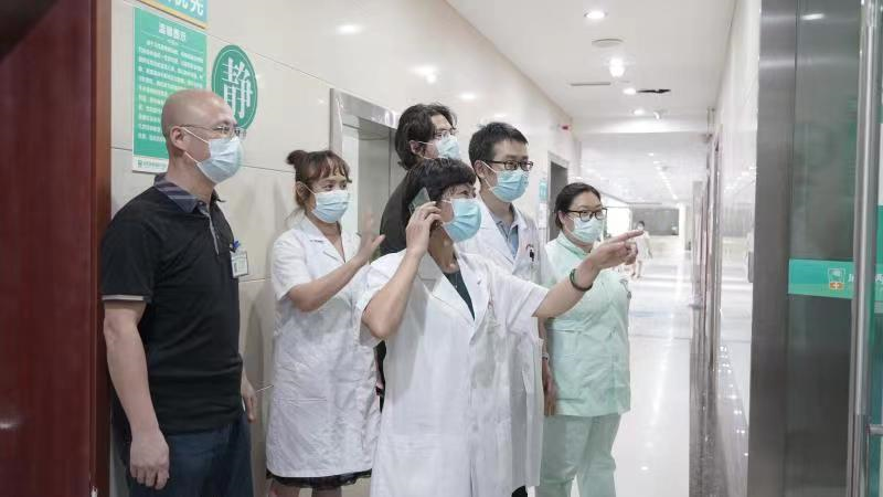 7月7日下午5点,模拟演练定位普通病区(神经内科)。发现新冠肺炎疑似病例后,科室主任了解情况立即电话上报至医务科负责人,医务科负责人按照流程分别汇报医院负责人及上级相关部门,得到上级指示后,医院实施封控。