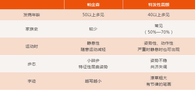 由于特发性震颤的手抖和帕金森的手抖症状比较类似,很多人分不清这两者的区别。其实它们是不同的两种病。下面我们从不同方面区分一下。